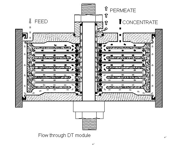 DT膜技術(shù)即碟管式膜技術(shù),分為DTRO(碟管式反滲透)和DTNF(碟管式納濾)兩大類,是一種專利型膜分離設(shè)備。該技術(shù)是pall公司專門針對滲濾液處理開發(fā)的。